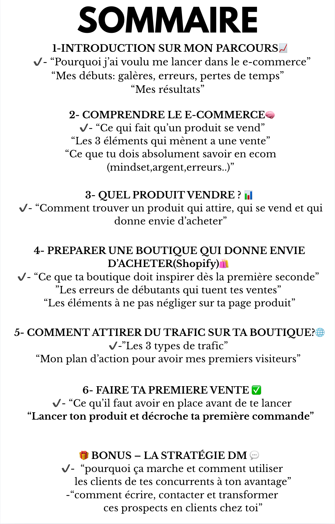 📘 En plus de ton ebook sur comment réaliser tes premières ventes en e-commerce, tu auras accès à une stratégie unique et encore peu connue : la Stratégie DM 💬.