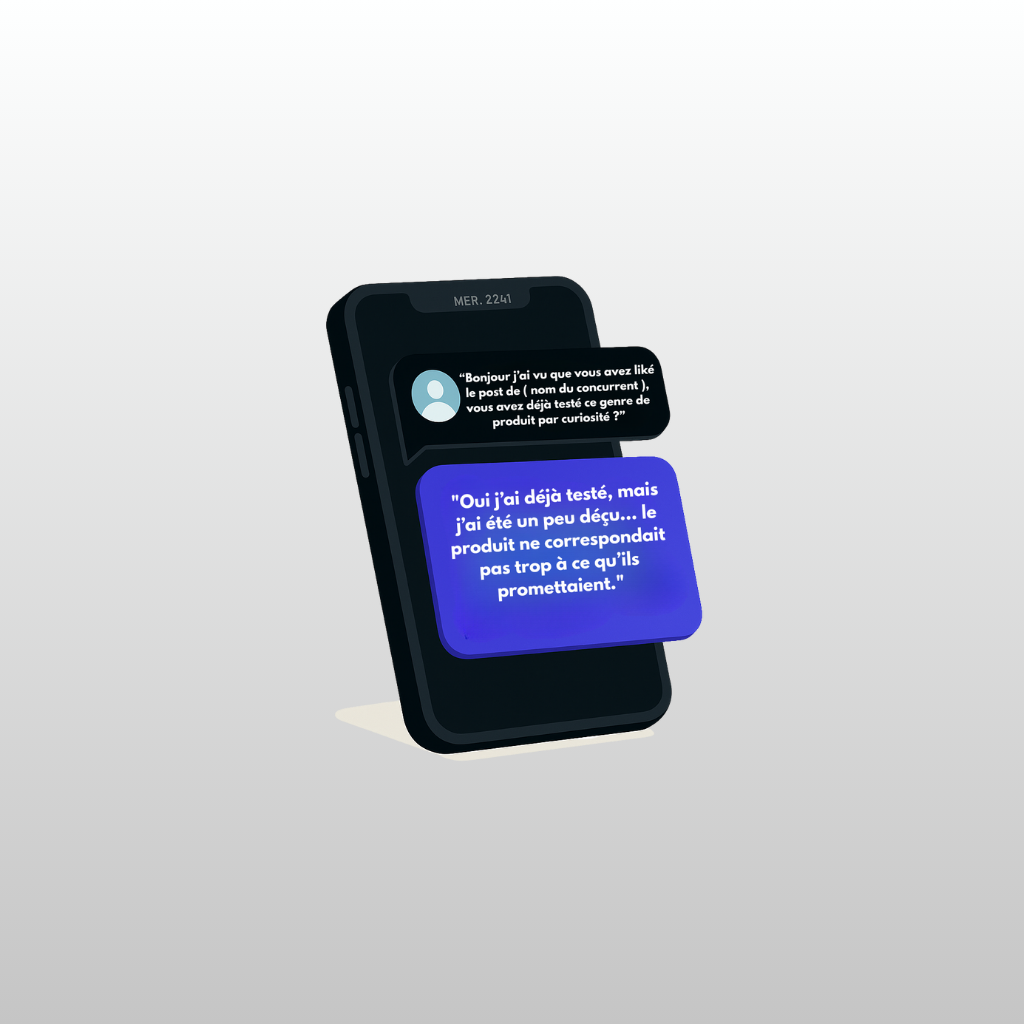 👉 Une méthode innovante qui te donne un avantage unique : parler directement aux clients de tes concurrents pour comprendre ce qu’ils aiment… et surtout ce qu’ils n’aiment pas.